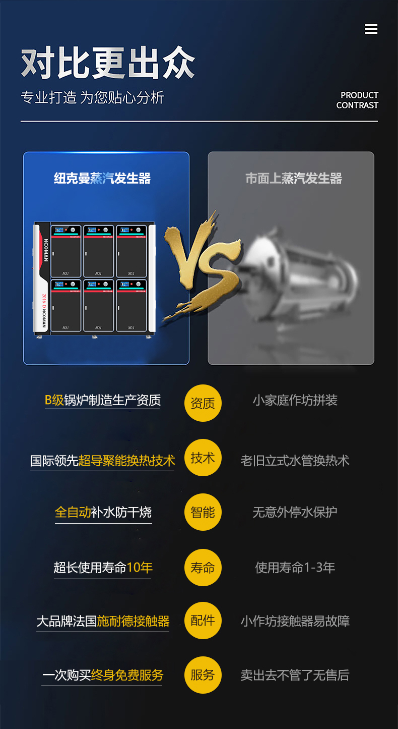 積木式自由組合,按需供氣;蒸汽量:6kg至6T;幾何容積小于30L,無(wú)需報(bào)檢;獨(dú)特汽水分離器蒸汽干度高達(dá)99%;溫度、壓力、可定制,更多參數(shù)可致電15323300918...